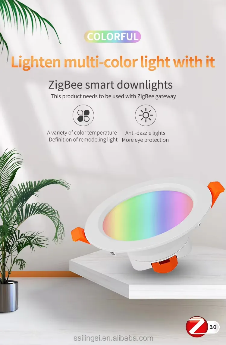 The Zigbee Smart LED Downlight lets you switch on/off, dim, and change color temperature (2700K-6500K) or RGB colors. Compatible with Alexa & Google Home for voice control, it works with the Tuya/Smart Life app for remote control, schedules, and group scenes. Stable Zigbee connection makes your lighting smarter and more reliable.
